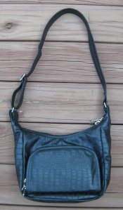 Purse carry is a valid option for women with a CWP. The purse shown below is from Hafner World Wide. I bought it as a training aid at a recent gun show. Surprisingly, it was made in the US and only cost $125 plus tax. This was less than comparable purses from Galco. It has a hidden gun compartment in the side of the purse. If the user feels threatened, she can unzip the compartment and have her gun ready to use without even needing to draw it.